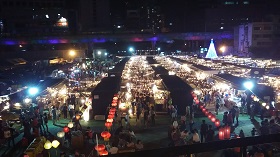 | バンコクの夜のバザー市場 時々、夜のバザー市場が開かれます。 沢山の人が出かけ、屋台も一杯でます。 お手軽価格で、いろんな食べ物が出ているので、お腹が一杯に。 バンコクの訪問初心者にはもってこいの場になります。 夜の光の中で雰囲気も最高! ![]() |