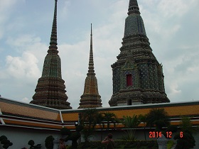 | バンコクの寺院 (2014年12月) バンコクには数多くの寺院があります。 いずれもきらびやかな装飾が施され、金色に輝く仏像が鎮座されています。 日本の寺院、仏像とは大分異なります タイにはタイの文化があります。 それを痛感します。 タイでは、寺院内部、仏像の撮影を許可されている所も大分あります。 訪問者にはありがたいことです。 後で思い出し、お祈りの気持ちを持ち続けることができるのですから。 ワット・ポー、ワット・ケルンも大きな寺院で大人気の場所です。 初めて、バンコクを訪れ、その荘厳さに驚嘆した寺院です。 |