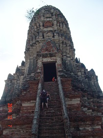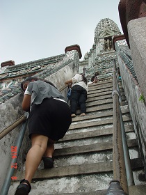 急な階段を命がけで登る(ワット・ケルン) 私も登りました! 手すりにしがみつくしか ありません。 必死です。 |