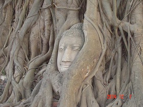 ![]() 菩提樹の根元に見守られている 仏頭 皆から最大限の敬意がはらわれて います。 お参りするとき、人間は この仏様の位置により低い位置で 手を合わせなくてはいけません |