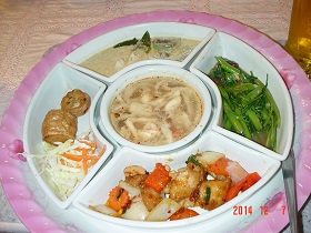 ![]() ツアーでの夕食 タイ料理セット トムヤンクン、空芯菜炒めなど。 トムヤンクンも美味しかったですよ |
