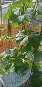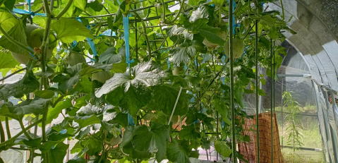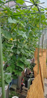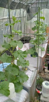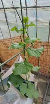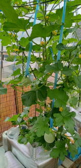 | ネットメロン 栽培 水耕栽培でネットメロンを栽培しています。 小型のビニールハウスで、観賞魚用の水槽、液体還流の為の上部フィルター、ポンプ、 水を冷やすためのクーラーを使用した簡単、小型の装置を自作で組み立てています。 液体肥料は、手動で、交換するシステムです。 |
